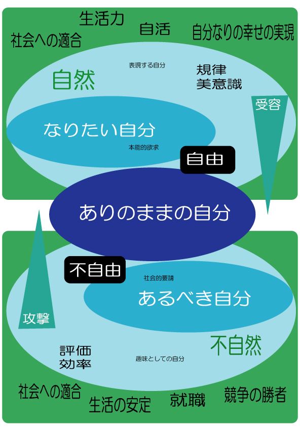 ありのままの自分 森のようちえん 2020年05月10日 「良い」「悪い」「望ましい」「避けるべき」という対立する価値観を示しているのではありません。両方正しくて、両方間違っている。ただ、言えることは以下のことです。・ベクトルがちがうので、いいところ取りはできない・目的に合わない手段は無効で、苦しみしか産まない・転向は今日からでもできる・見分ける方法は明確にできる・「ありのままの自分」を強調するのは、嘆かわしい状況